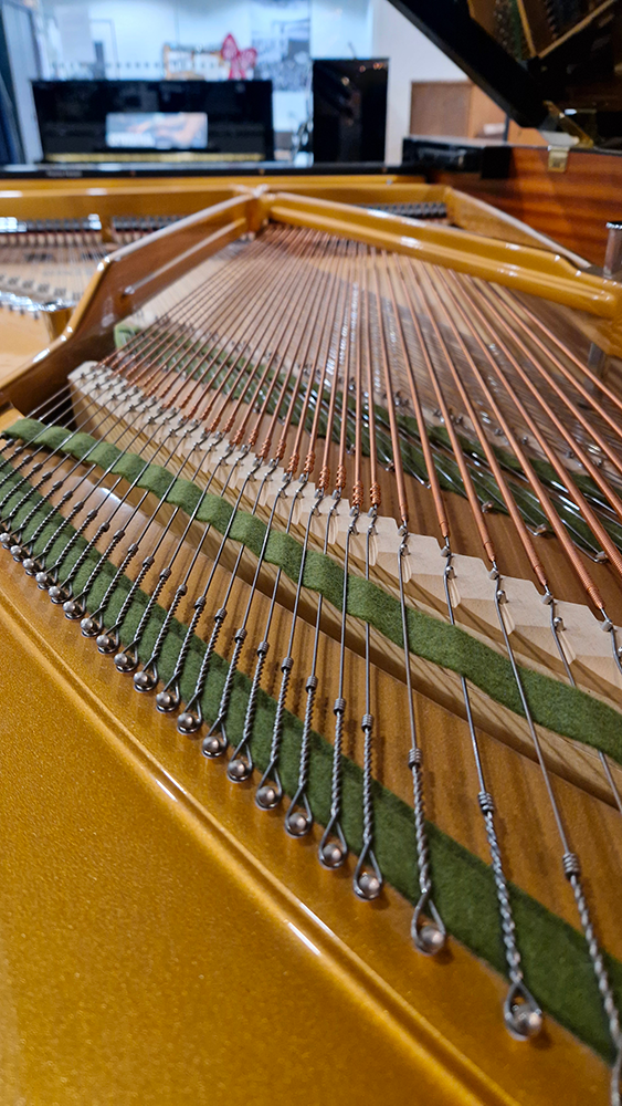 Le cadre en fonte du demi-queue a été entièrement repensé afin d’optimiser la durée du son, la projection et l’énergie acoustique. Son sommier multicouche, composé de neuf plis de bois hautement sélectionnés, garantit un accordage d’une grande finesse et une stabilité remarquable dans le temps, même en usage intensif.